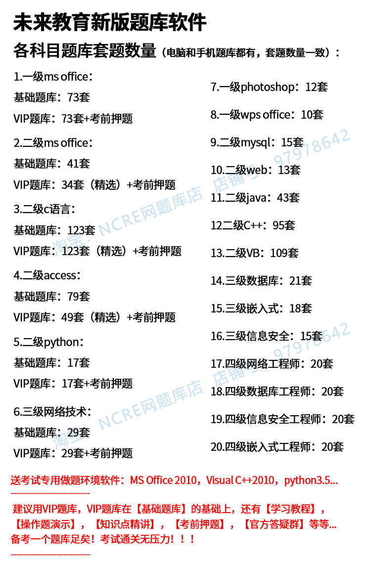 2021未来教育vip题库激活码一二级msoffice/c语言/access/python