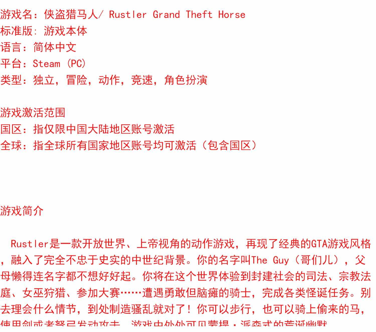 Steam 猎马人/ Rustler Grand Theft Horse 正版激活码cdKey