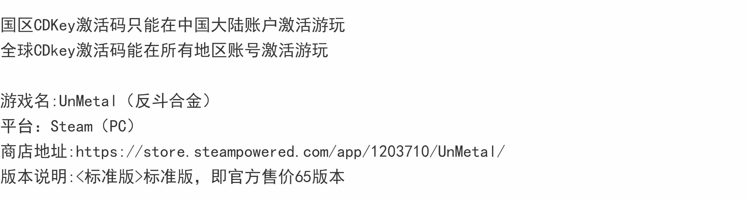 STEAM正版 UnMetal 反斗合金 国区激活码key