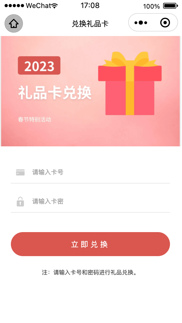 前端演示-礼品卡/提货卡模式:https://fastgift.noticer.cn/#/pages/card/login?scene=cid%3D1