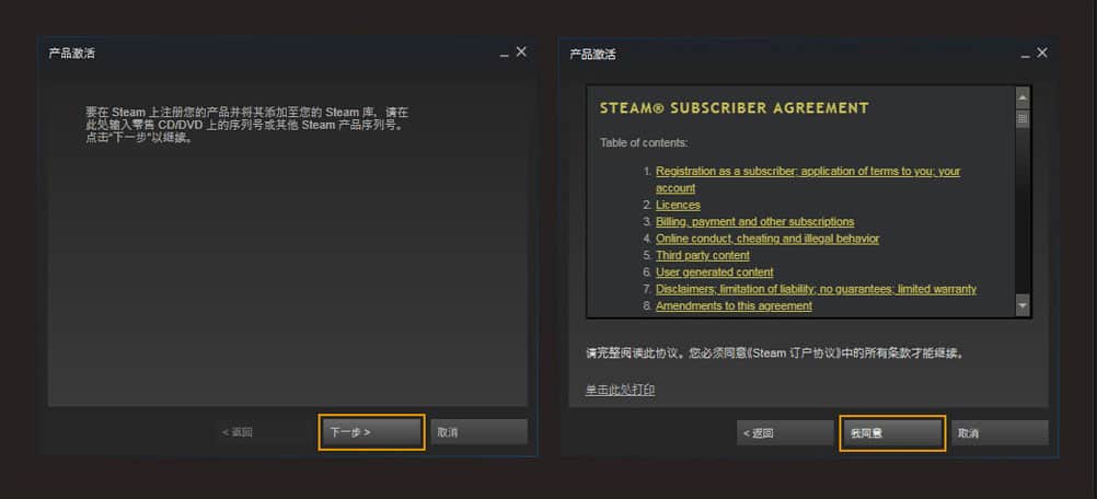 步骤三:在弹出的页面对话框中输入你购买的 游戏激活码,点击”下一步“,即可完成激活。祝您游戏愉快